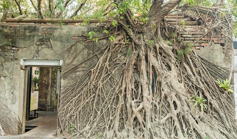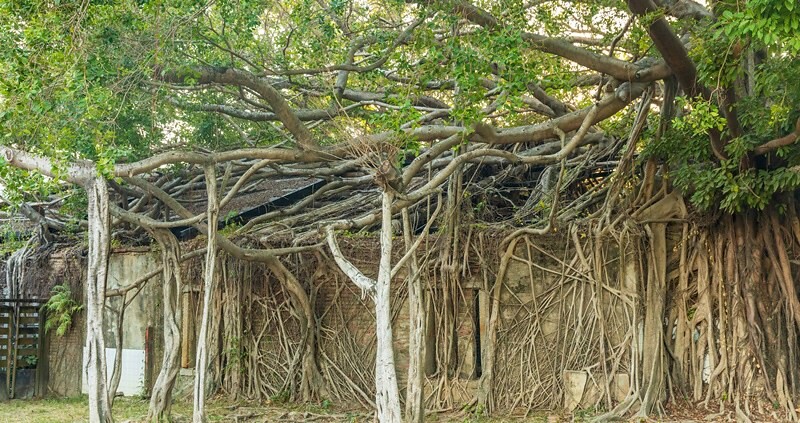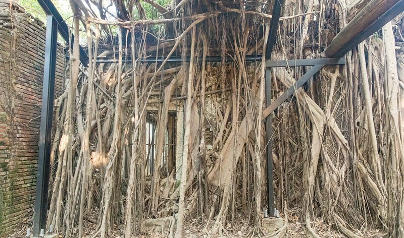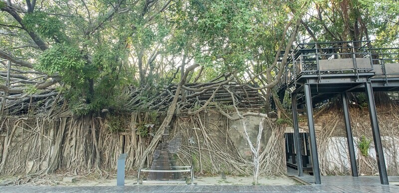 欣賞這些盤根錯節的榕樹根猶感不可思議,更難得是這些古樹多半還存活著,上半依舊綠葉茂盛,下半部綠地成蔭,在炙熱的夏天,輕風徐來,詩興、涼意好不快活。