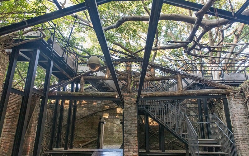 如今的台南安平樹屋群,原為德記洋行的倉庫群;商德記洋行約莫創立於1867,和怡記、和記、東興、唻記,合稱安平五大洋行,但現今規模大致上完成於1911日據時代的鹽業會社,二戰後改為臺南鹽場辦公廳舍,佔地約1,400多坪,退後一步遠欣發現真的相當壯觀。