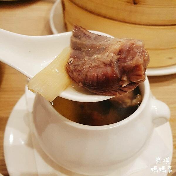 原盎燉牛肉湯,這應該是牛腱肉,哇哇哇~整個燉到我分不出來是牛肉,湯好清澈好好喝,肉嫩到不需要咬,吸一下就化開拉