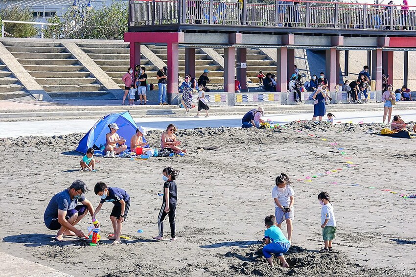 而且寬廣的沙灘腹地很適合民眾帶著小朋友來這邊玩水、玩沙,加上秋季午後的陽光沒那麼炙熱,出來親近大海、曬曬太陽也是個不錯的休憩場域。