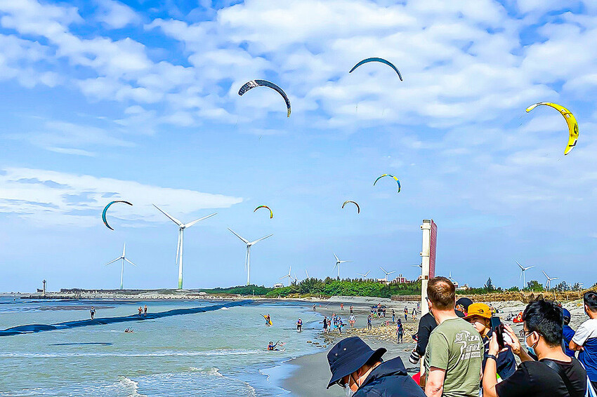 此外跳高表演更是需要選手們控制風箏技術與衝浪板特技的能力相結合,才能在海浪上使出各種騰空動作,精湛的表演值得現場民眾觀賞及大聲喝采,有興趣近距離欣賞風箏衝浪的朋友也不要錯過此次機會。