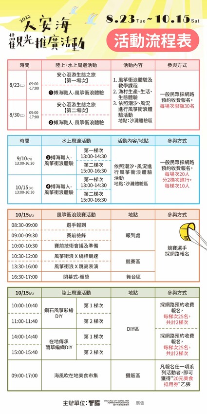 2022大安海觀光推廣活動,8月~10月活動流程表