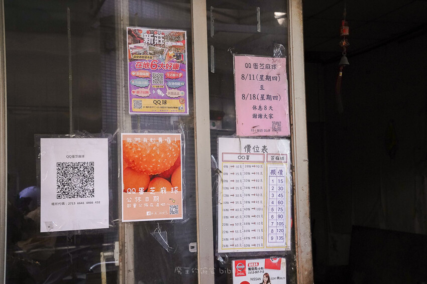 新莊QQ球休息時間不一定,現場也會張貼休息公告,另外粉絲團也會發文休息時間,注意不要撲空前來,然後這裡的QQ球價位最低是10元有四顆,依序6顆,8顆倍數計價,平均一顆是2.5元,很便宜,然後芝麻球一顆是15元,就只有這兩種點心,沒有提供其他口味,現場製作現炸,我當天大約等了40分鐘,平日就等40分鐘,那假日可能會更久,可以參考一下。
