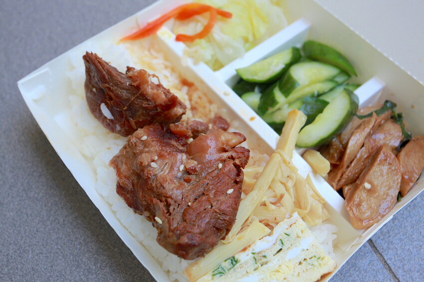 今天就外帶滷小排飯95元與筋肉飯95元。