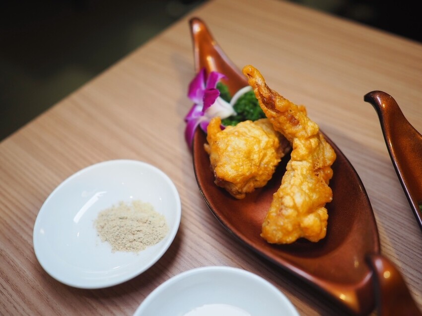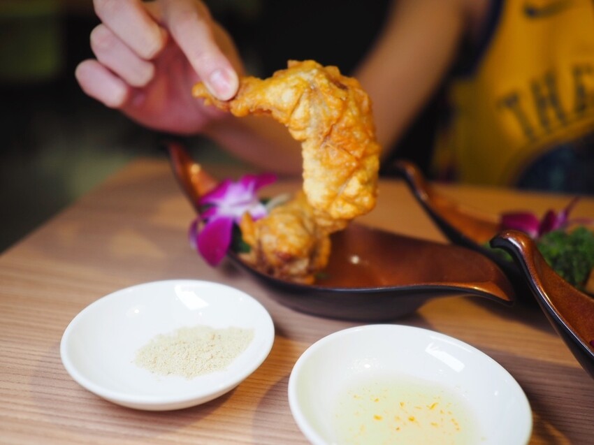 現炸的泰拳蝦餅,一口咬下滿溢的口感,是相當扎實彈牙的蝦肉,