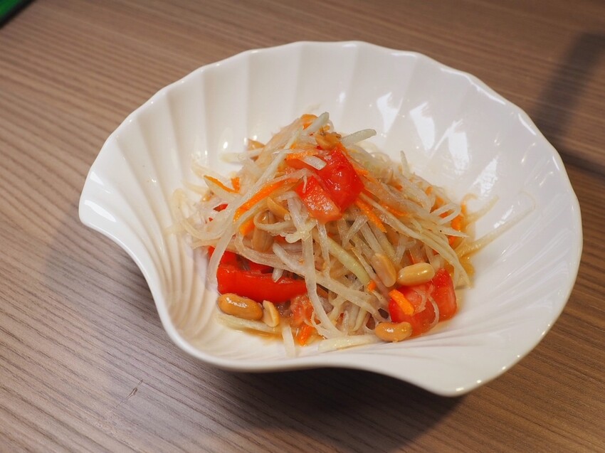 涼拌青木瓜也是我個人推薦的開胃小菜喔,酸辣口味搭上脆爽的青木瓜絲,