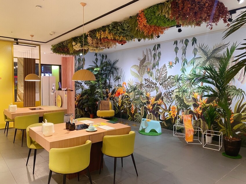 《追樂祕式泰鍋物》入口處打造拍照打卡的叢林牆面▼