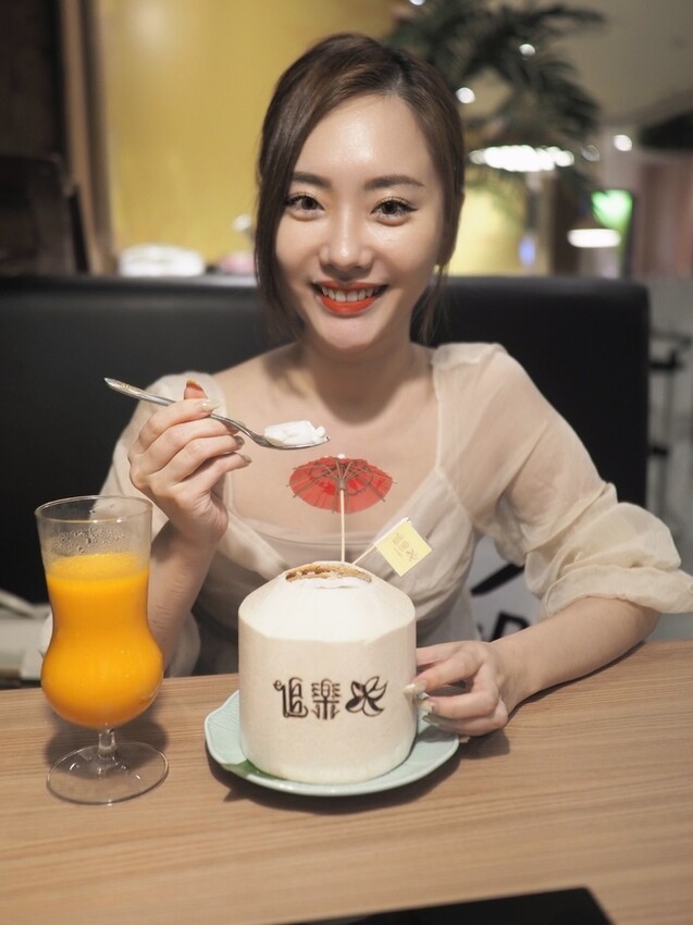整顆椰子上桌相當霸氣,超級香濃帶有Q度的奶酪,椰奶的味道很濃郁好吃,