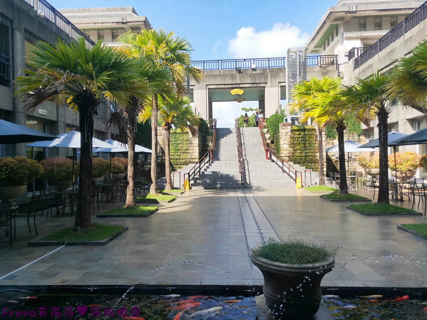 左側可以看到剛剛分享的戶外園區的高聳樹木與遮陽座椅.