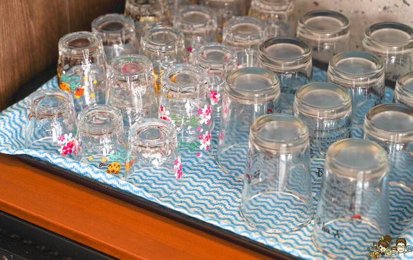 水、餐具自取,連玻璃杯都好可愛,很韓系