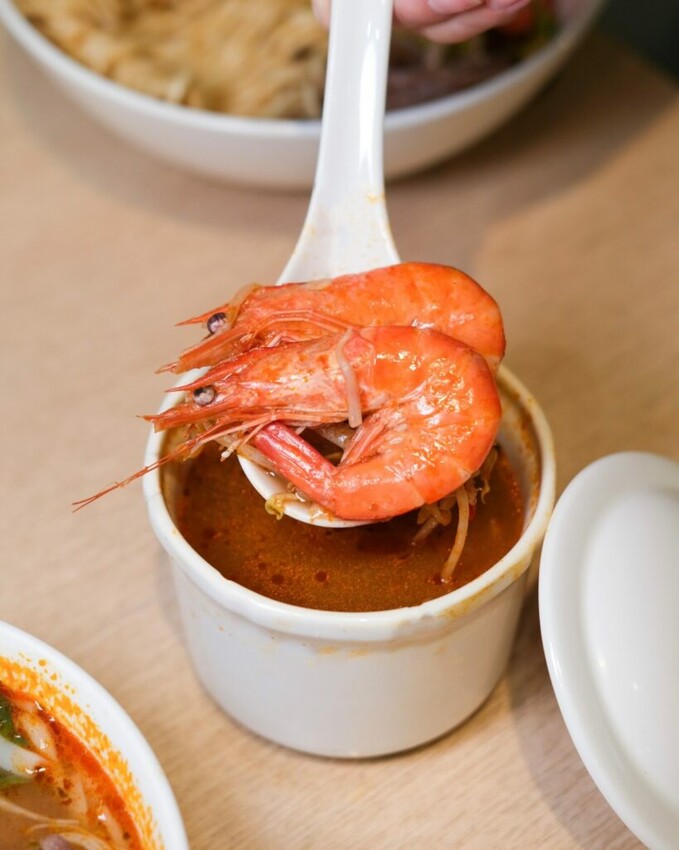 ▼呈現橘紅湯色的酸辣海鮮湯,撈的到兩隻頭好壯壯的鮮蝦,喝起來集結酸、辣、鮮的滋味,是很解膩的南洋口味~