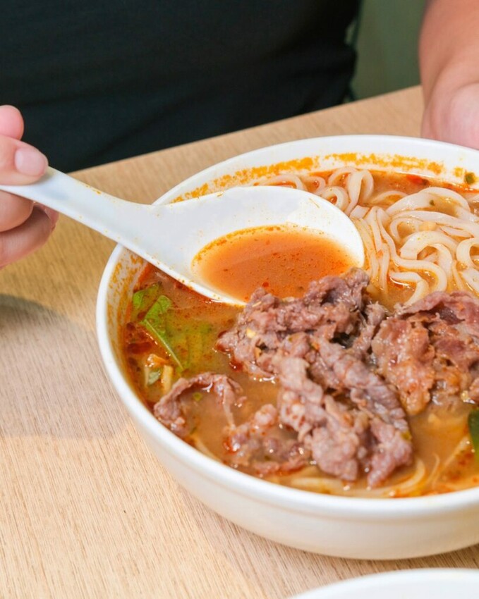 ▼南洋牛肉河粉喝進嘴裡首先是檸檬的酸香,接著是清爽香茅的風味,搭著滑順咕溜的河粉口感,還有給料大方的軟嫩牛肉片,不知不覺就會整碗吃光光~