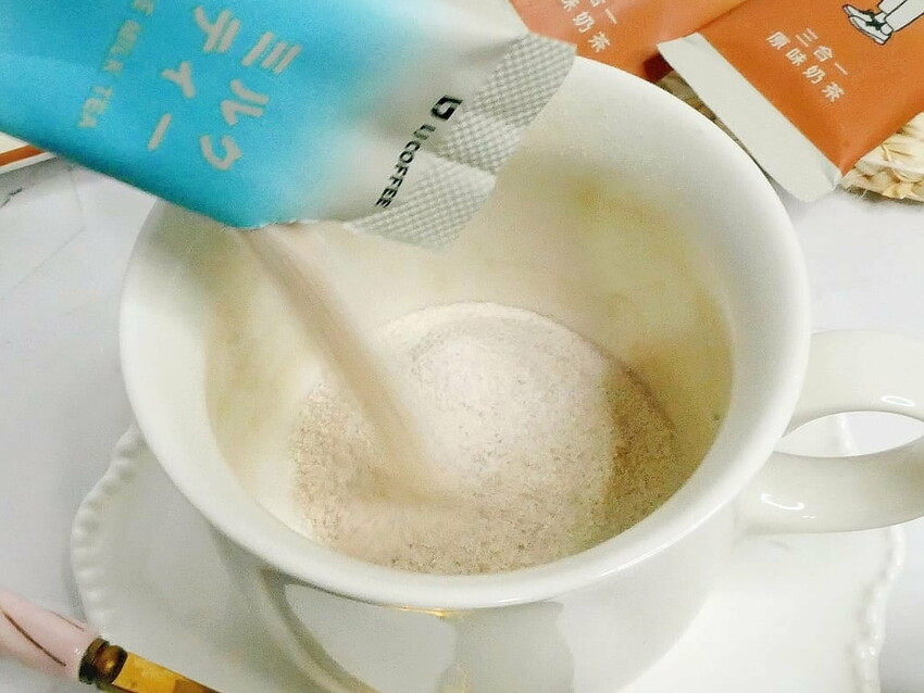 熱水沖泡系列-三合一原味奶茶和二合一拿鐵珈琲. 當天氣微涼時以熱水沖泡一杯來喝. 感覺特別暖心~