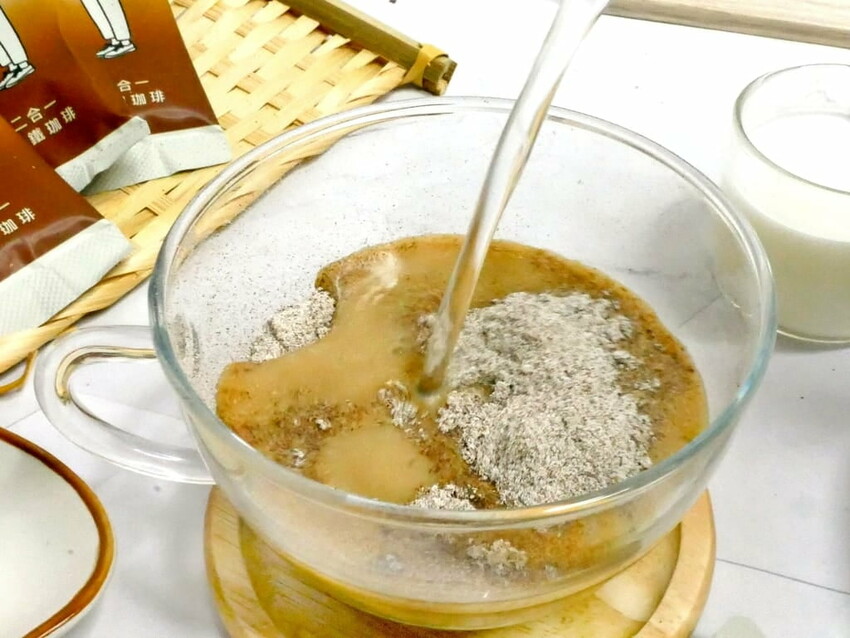 早晨或晚上天氣微涼時. 則是換熱水沖泡系列來沖泡. 倒入一包在杯中. 加入150CC熱水.拌勻後就可以喝了