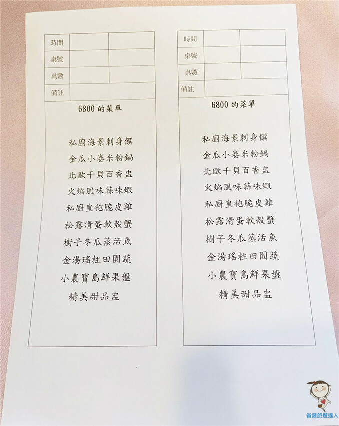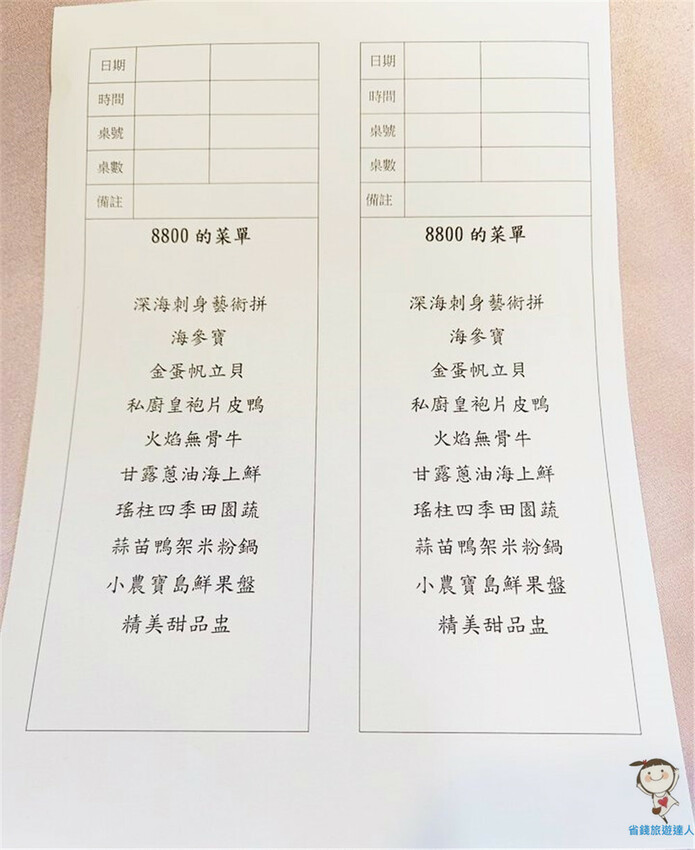 這張是$8800的菜單,一樣有10道菜,跟$6800的差別是多了道私廚皇袍片皮鴨