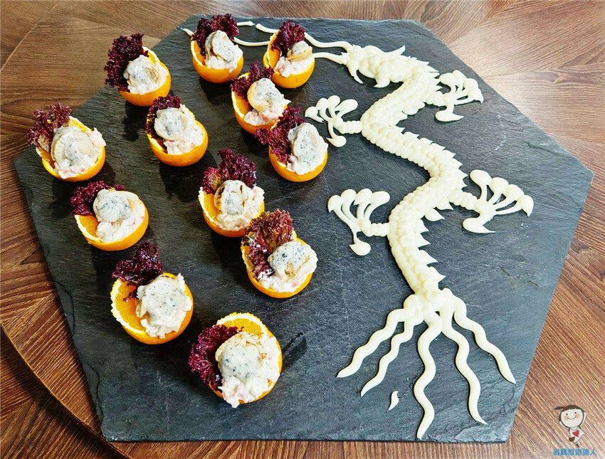 而且上面竟然還用美乃滋做出了一條龍做裝飾,這排場根本是要出國比賽了吧?🥳