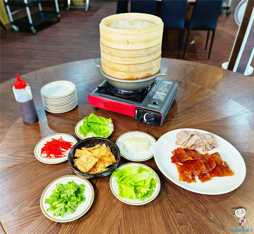 蒸籠內則是讓人包烤鴨的餅皮,還特地用蒸籠來保溫,餅皮拿在手上還溫溫的呢!