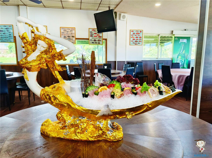 因為金色的美人魚上面還有滿滿的乾冰,瞬間還以為他們把阿拉丁神燈端上桌了