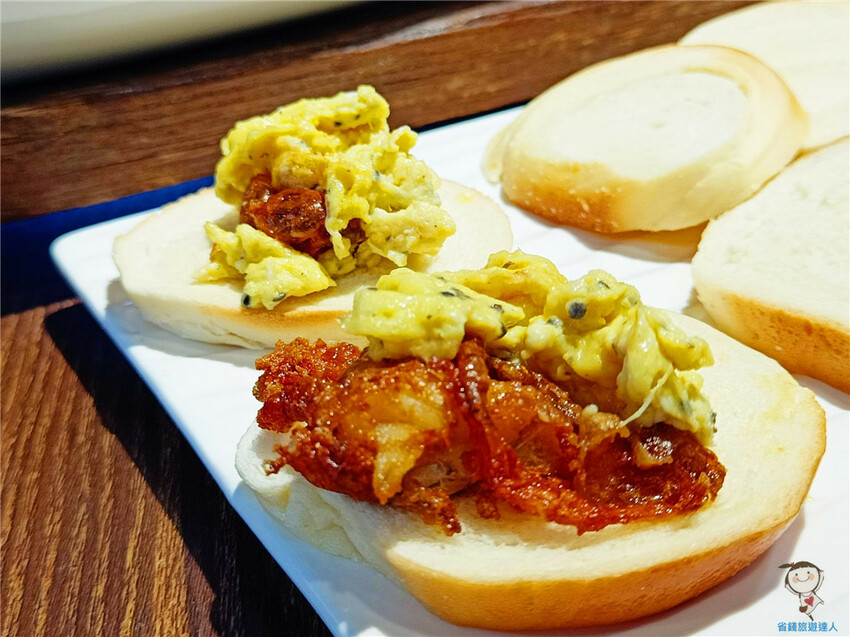 原來正確的吃法是要把滑蛋和軟殼蟹一起擺到麵包上面