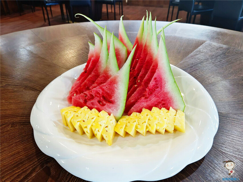 當天的水果盤是鳳梨和西瓜,當令的季節水果就是甜美多汁