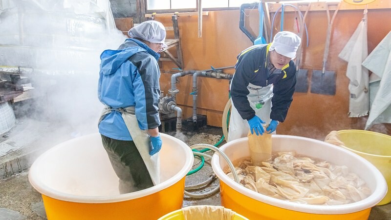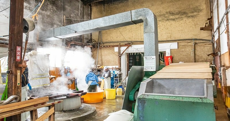 酒造裡的工作人員一絲不句,就連裝酒米的布袋都經過高溫殺菌,並加以清洗。