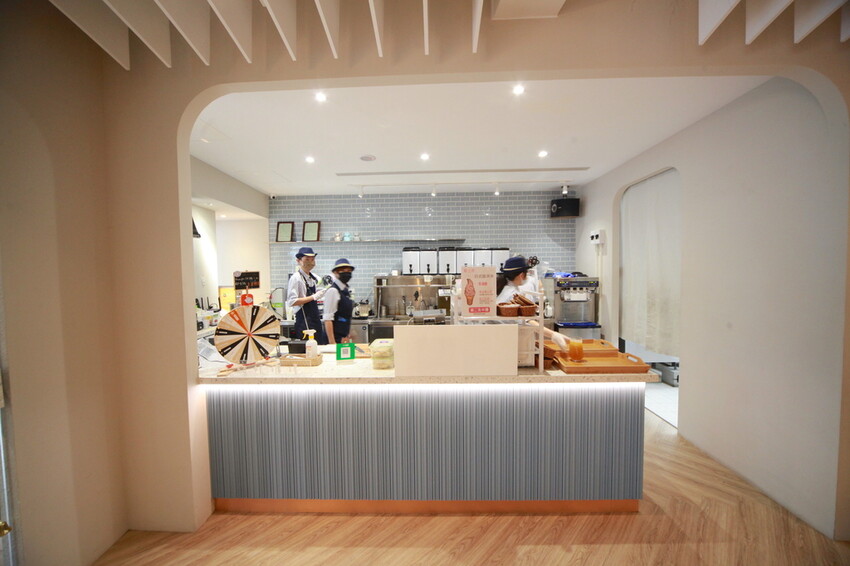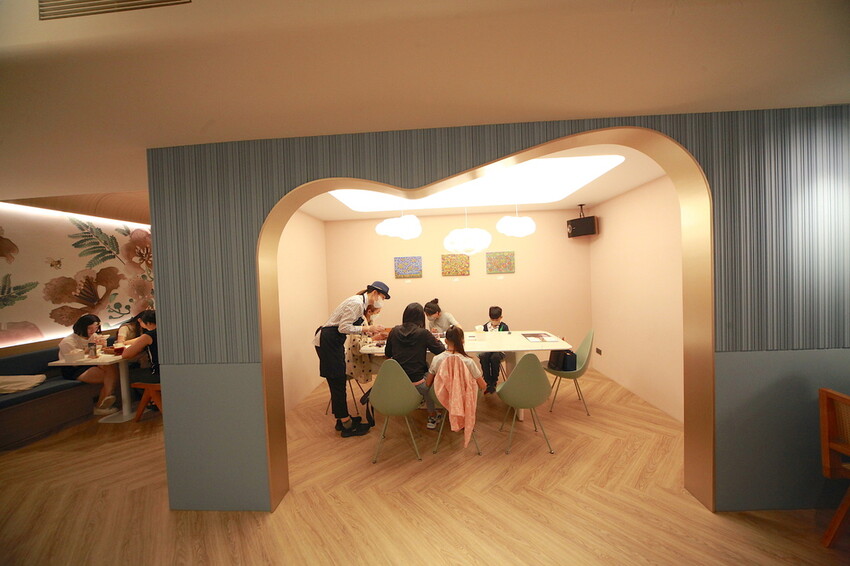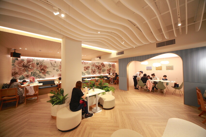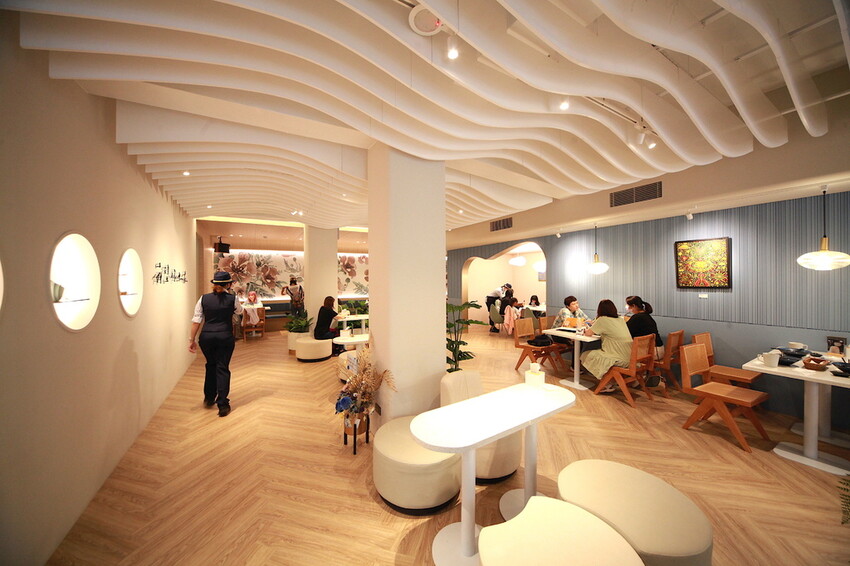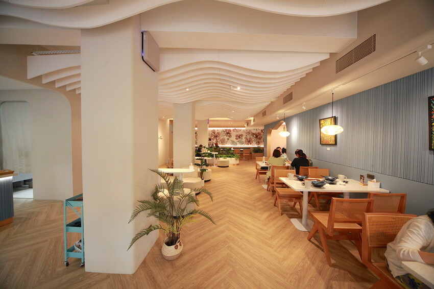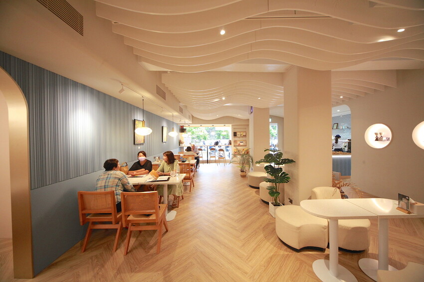 波浪形天花板與蒂芙尼藍牆面,整體裝潢是網美會喜歡的氣氛。
