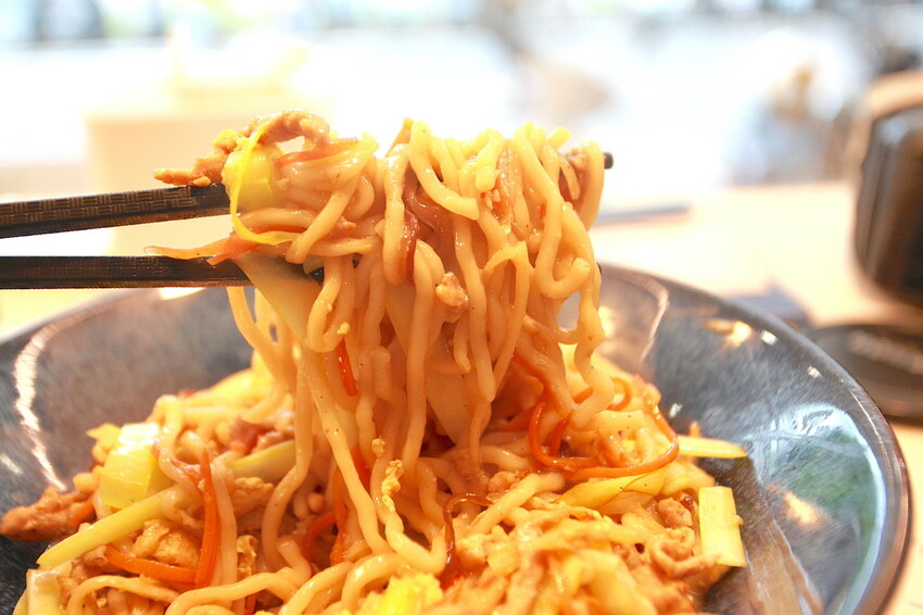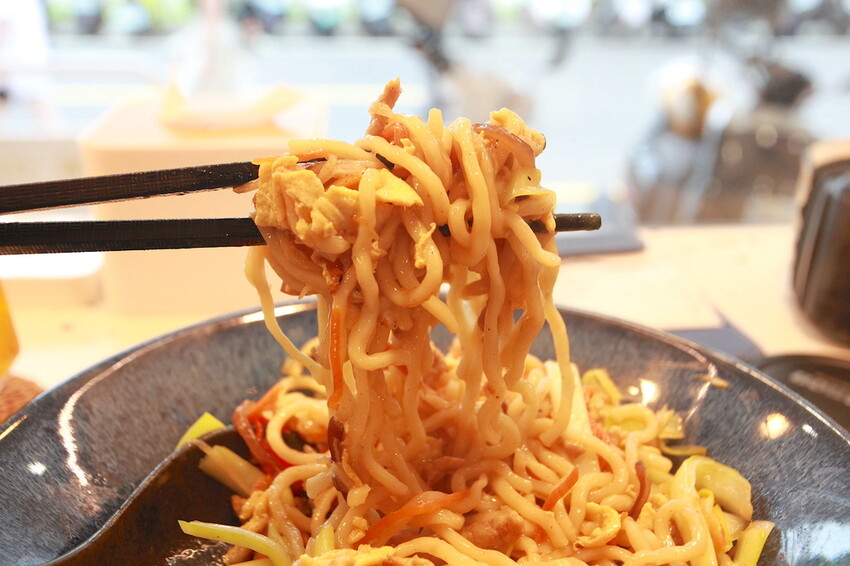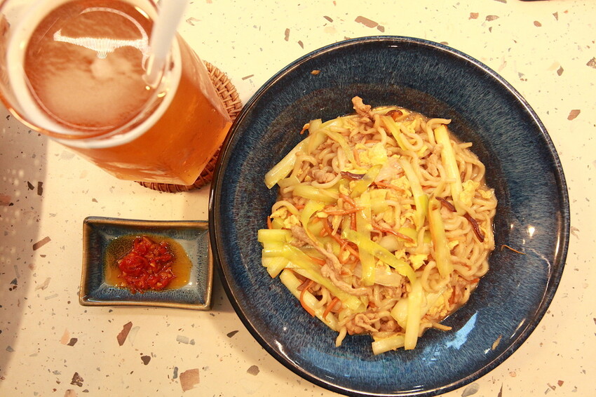 據說這麵條都是店家手工製作的,來手搖飲料店吃炒麵頗有創意的。