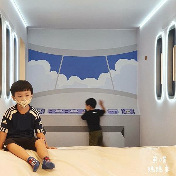 飛機內部也有機長室,噗寶玩得很開心