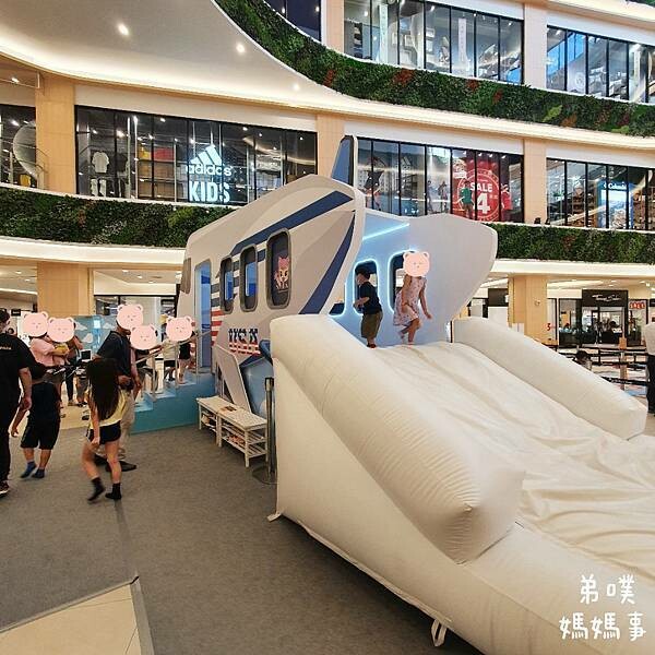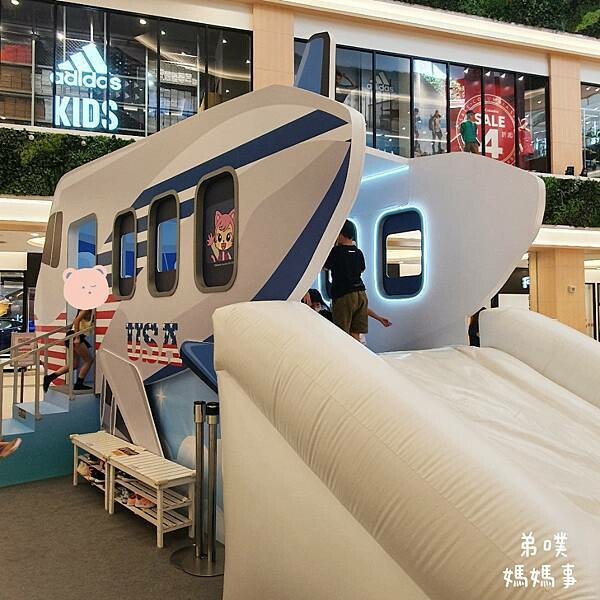 免費的飛機氣墊溜滑梯,還有妙妙喔!! 進入要穿襪子、要穿襪子、要穿襪子(很重要要講三次),消毒、脫鞋就能進入