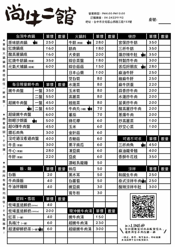 ▲「尚牛二館」菜單 (111年06月11日有推出新菜單,如下)