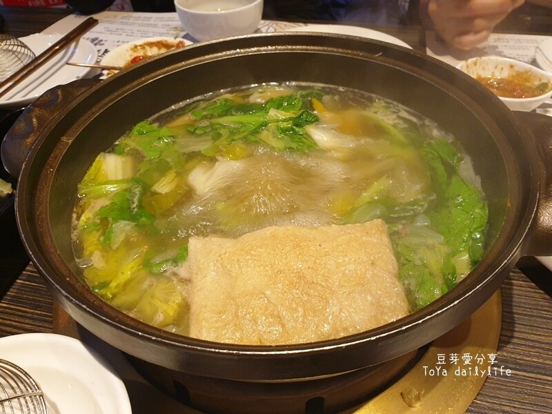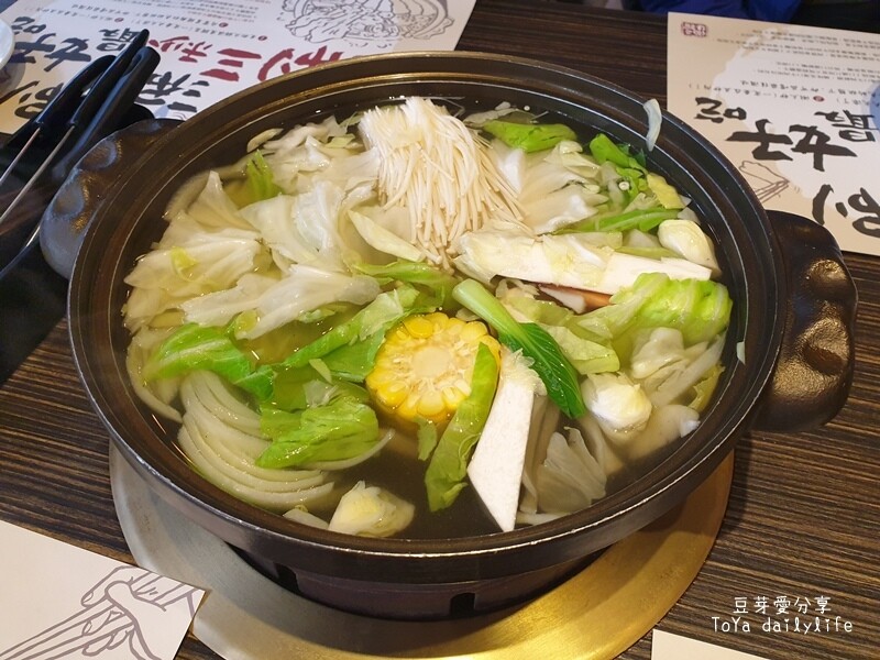 裡面基本的蔬菜都包含了,有高麗菜、青江菜、玉米、金針菇、洋蔥等,喝起來滿滿的蔬菜味,非常鮮甜,且湯是可以續加的。