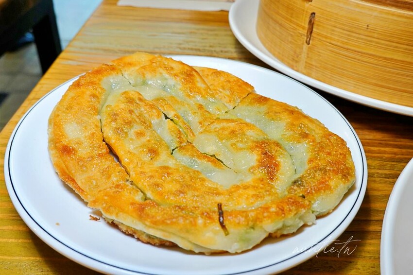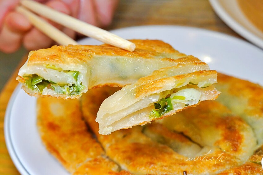 煎的外酥內軟,有點像是宜蘭的蔥油餅,像蝸牛形狀一圈圈的,蔥花加的不少,水嫩水的,口感不會乾乾,好吃。