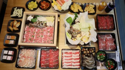 第一層是肉片層我們選牛五花,然後加價$100升級海陸套餐,