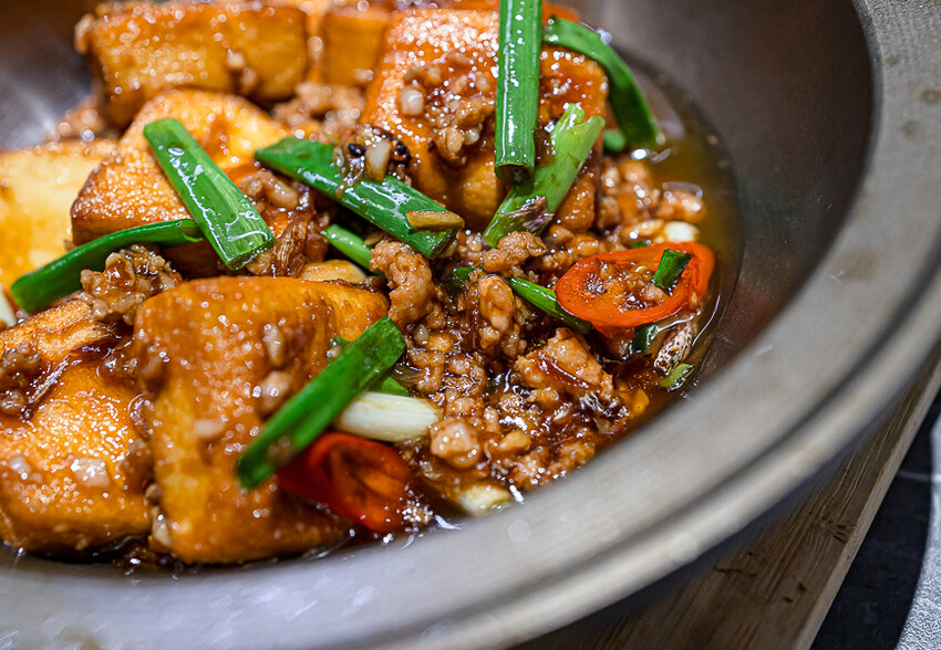 這道豆腐料理是使用老皮嫩肉的蛋豆腐,配上那香氣逼人絞肉、蔥蒜以及辣椒,基底的醬香濃厚,口味重超級下飯,雖有辣椒但不辣,味道十分出色我很喜歡!