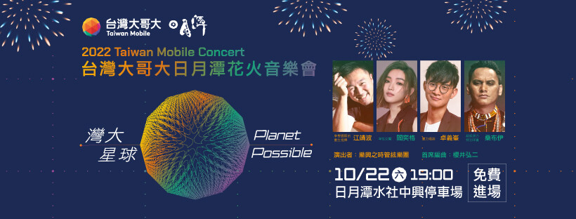 - 10/22(六) 台灣大哥大日月潭花火音樂會《灣大星球Planet Possible》