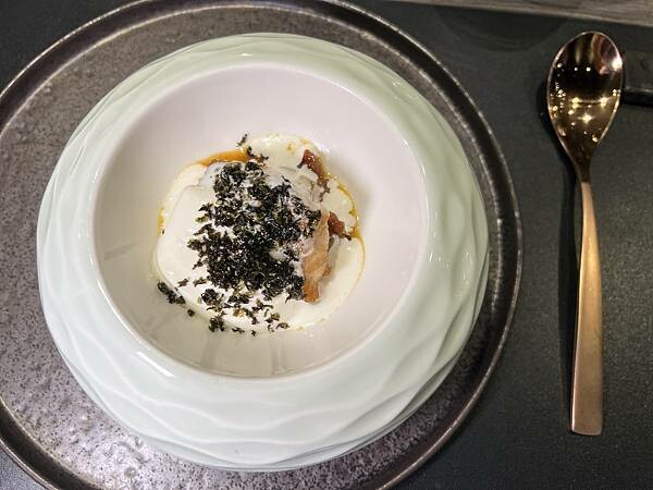 最上方還放有龍眼木煙燻鮮奶油、風乾海苔片,