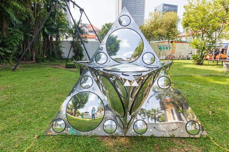 車子停在甘榜格南區離蘇丹回教堂不遠的小公園旁,公園不算大但綠地很完整,而且還有不少像這樣的藝街景觀設計。