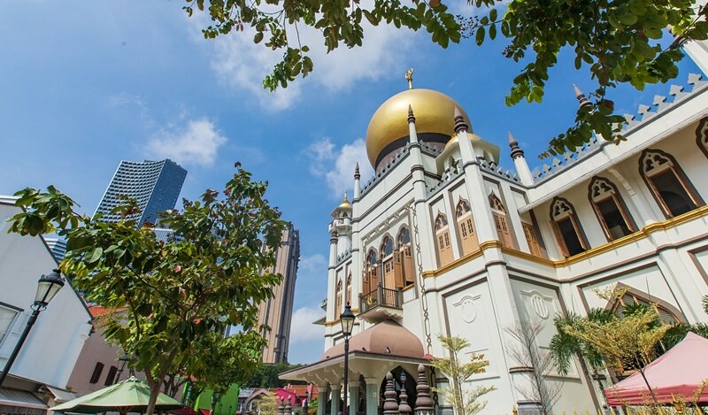 蘇丹回教堂全名是:Sultan Mosque,Masjid Sultan建於從1824年至1826年間,由愛爾蘭設計師Denis Santry設計,,融合了波斯、土耳其、馬來西亞等建築風格,金黃色圓頂顯目卻又莊嚴華麗,只在1960年進行過比較大的翻修,1975年3月14日列為新加坡國家古蹟,也是新加坡歷史最久的回教堂。教堂免費入內參觀,但必須脫鞋並且穿著長褲,身穿短褲或短裙,可以租件回教長袍再進入。