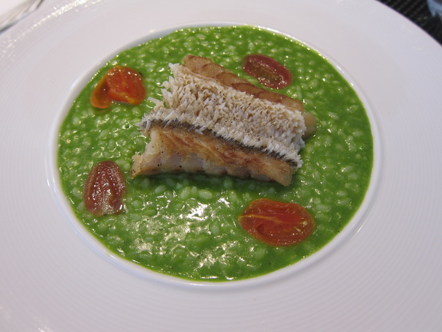 我今天點的是青醬燉飯佐嫩煎馬頭魚及油漬番茄,菜單上有特別註明:馬頭魚的魚鱗煎至酥脆,請相信我們它很好吃,不要把它丟在旁邊。點餐時店員也特地再說明了一次魚鱗可以吃...