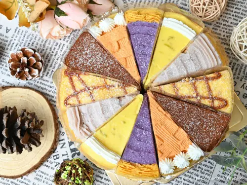 糖漬檸檬千層蛋糕、原味香草千層蛋糕、鄉間芋見千層蛋糕、伯爵奶茶千層蛋糕、焦糖鹽之花千層蛋糕、伯爵藍莓千層蛋糕、白蘭地巧克力千層蛋糕、小山園抹茶千層蛋糕、提拉米蘇千層蛋糕與綜合水果千層蛋糕。