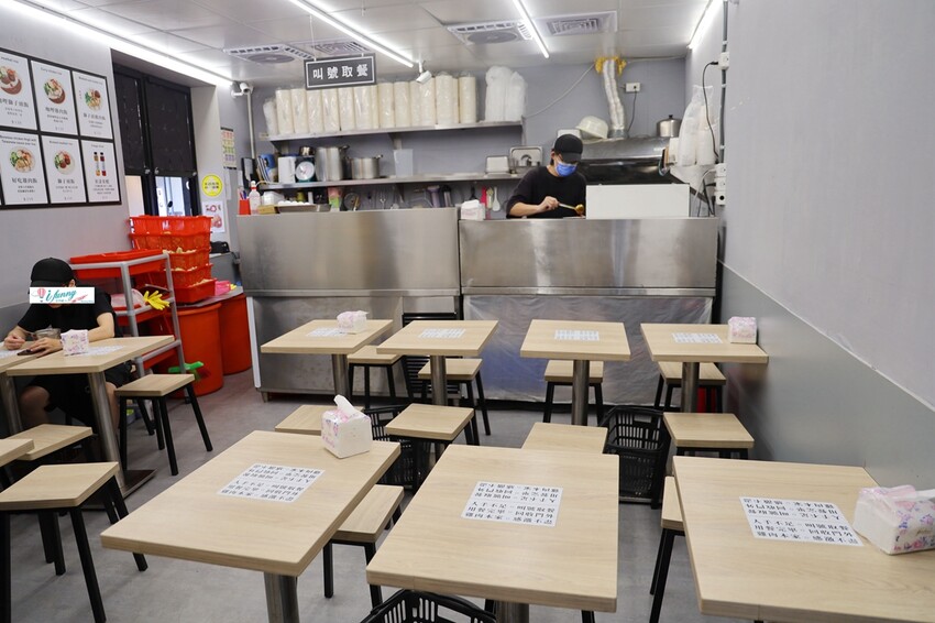 在點餐口結完帳,就可以到座位區,等候叫號取餐。用餐完畢,再把餐具拿到門外的餐具車上回收。