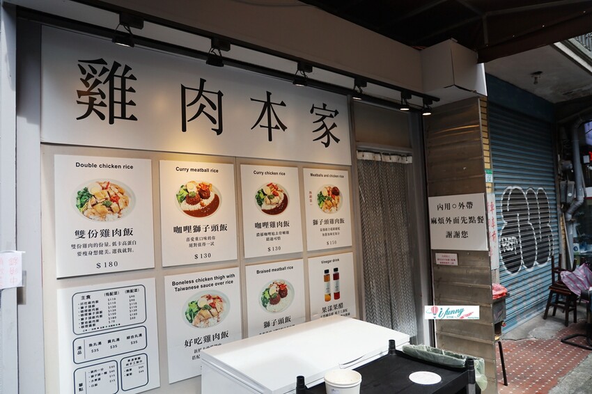 雞肉本家主要提供雞肉飯、紅燒獅子頭及咖哩飯,另外還有湯品及飲料。