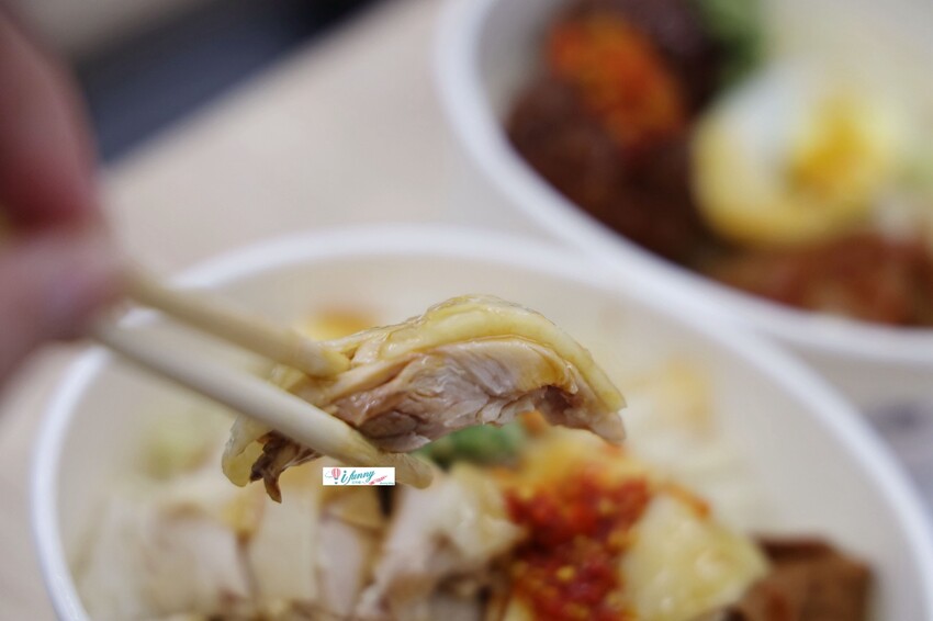 雞皮的部份很軟滑,雞肉吃來很軟嫰,調味上也不算是南洋口味,但雞肉本身是有味道的,咬下會吃得到雞肉的香甜,不過加上辣醬或蔥醬後,會覺得更有滋味。