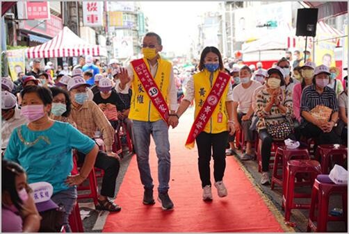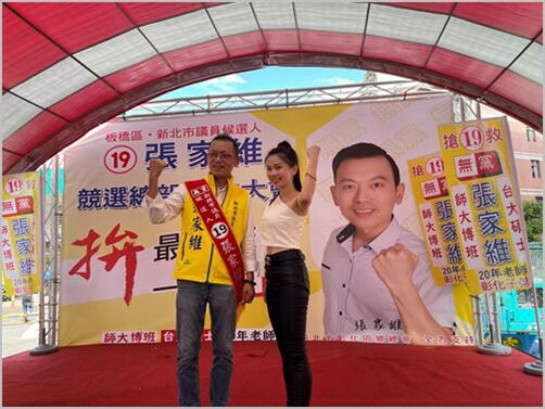 圖:歌手蔡宜君現身力挺同鄉市議員候選人張家維。(圖/張家維競選總部提供)