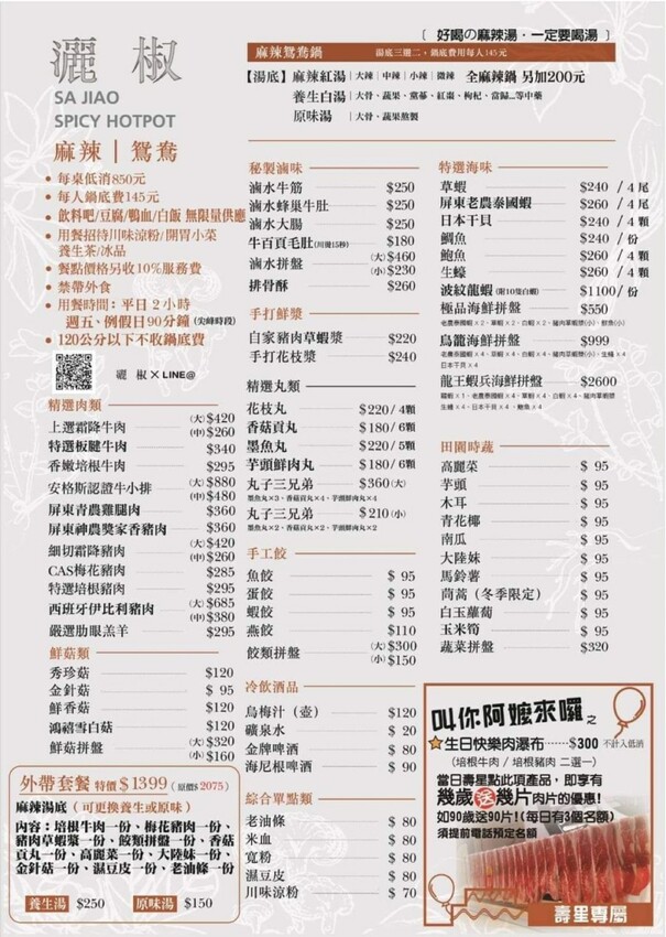 生日壽星還可以加購300元就有瀑布肉肉,帶阿嬤、阿公來用餐超值優惠