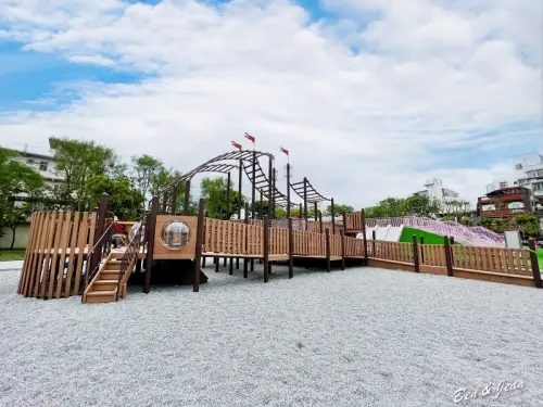 一旁就是小朋友最愛的碉堡公園遊戲區,總共有多達11項設施