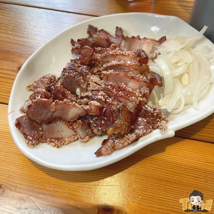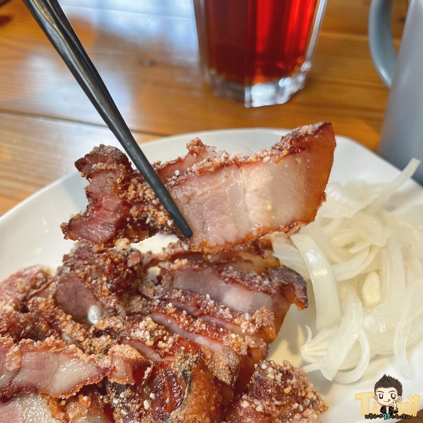 脆脆的外皮,加上帶甜、不辛辣的洋蔥一起吃,很有解膩的作用喔~