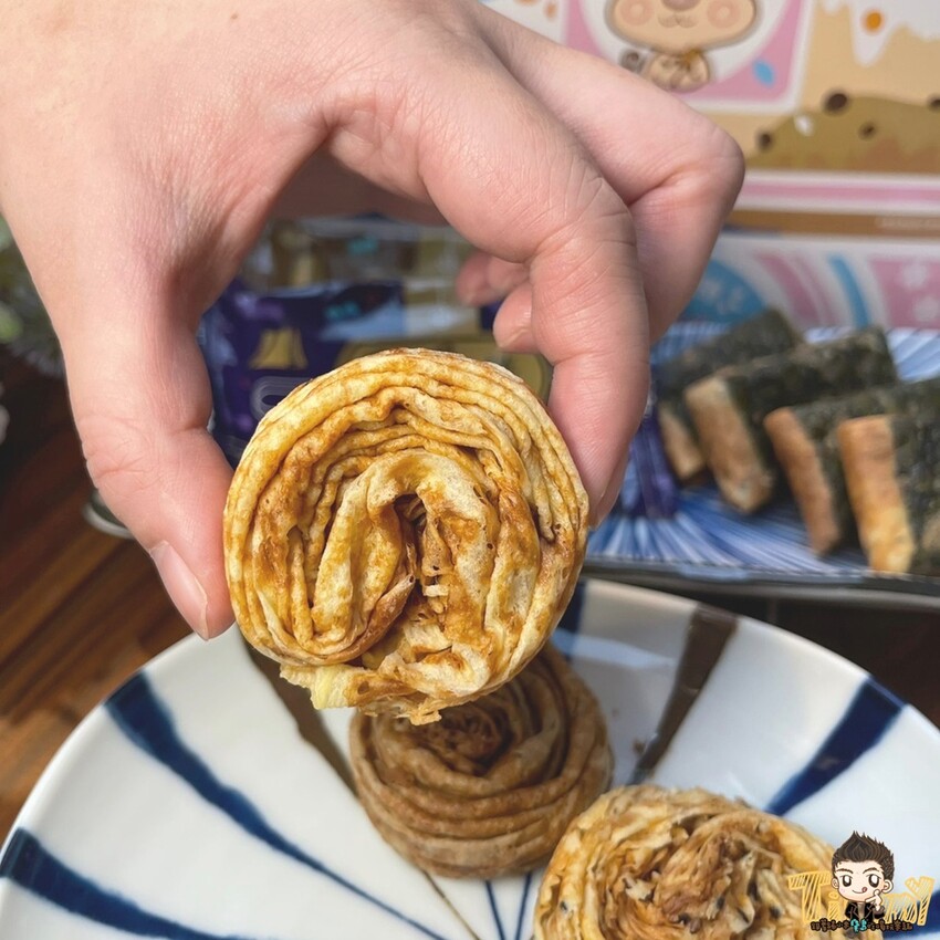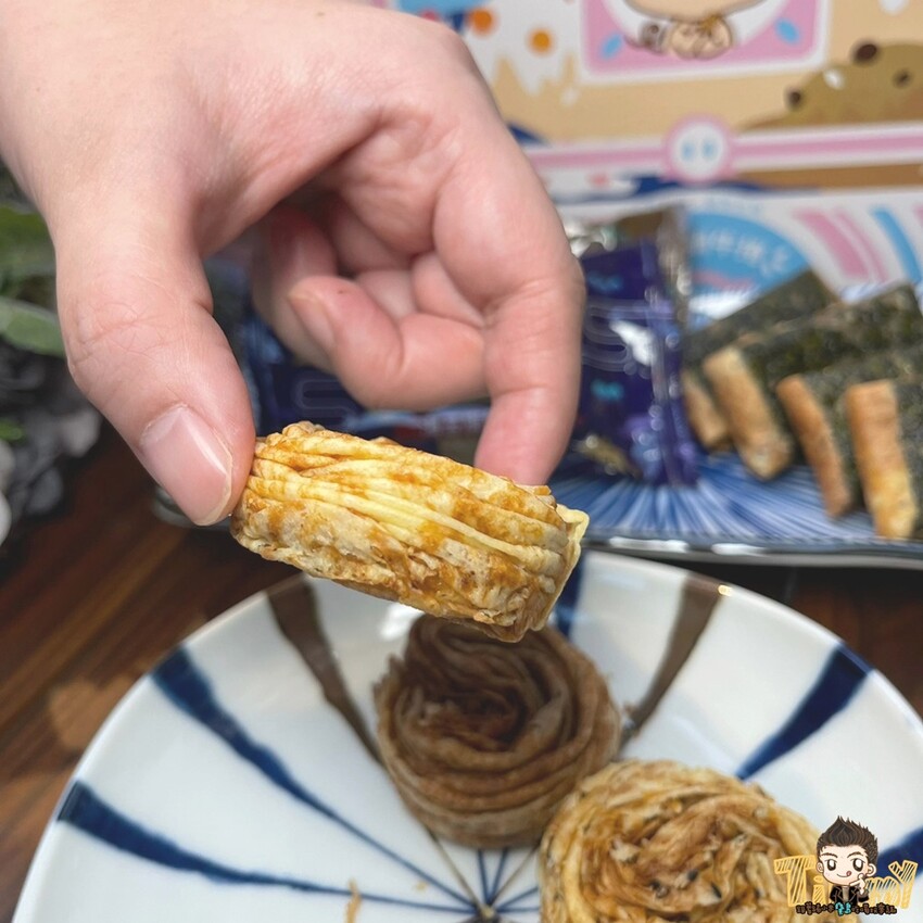 海苔旗魚鬆有魚鬆的香氣、酥鬆的口感,配上清香海苔和酥脆餅皮,挺適合買給長輩享用的喔