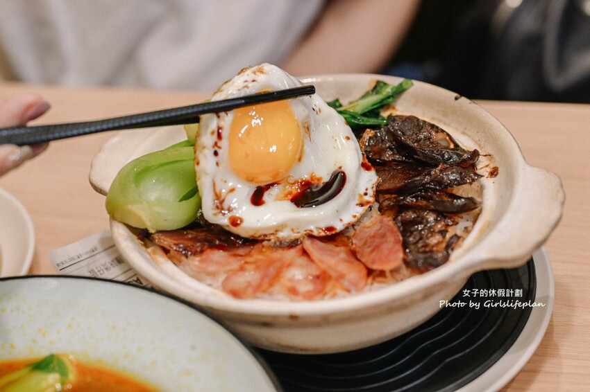 煲仔飯是港式經典中的經典,《極之好味》做的相當道地擺盤也十足的港,臘味紅色是帶著蜜汁的臘腸,黑色是肝腸,搭配底層略帶有鍋巴的米飯,還有那缺一不可的靈魂醬油,再戳破金黃蛋液緩緩流下融入飯中的濃稠,我太喜歡了。