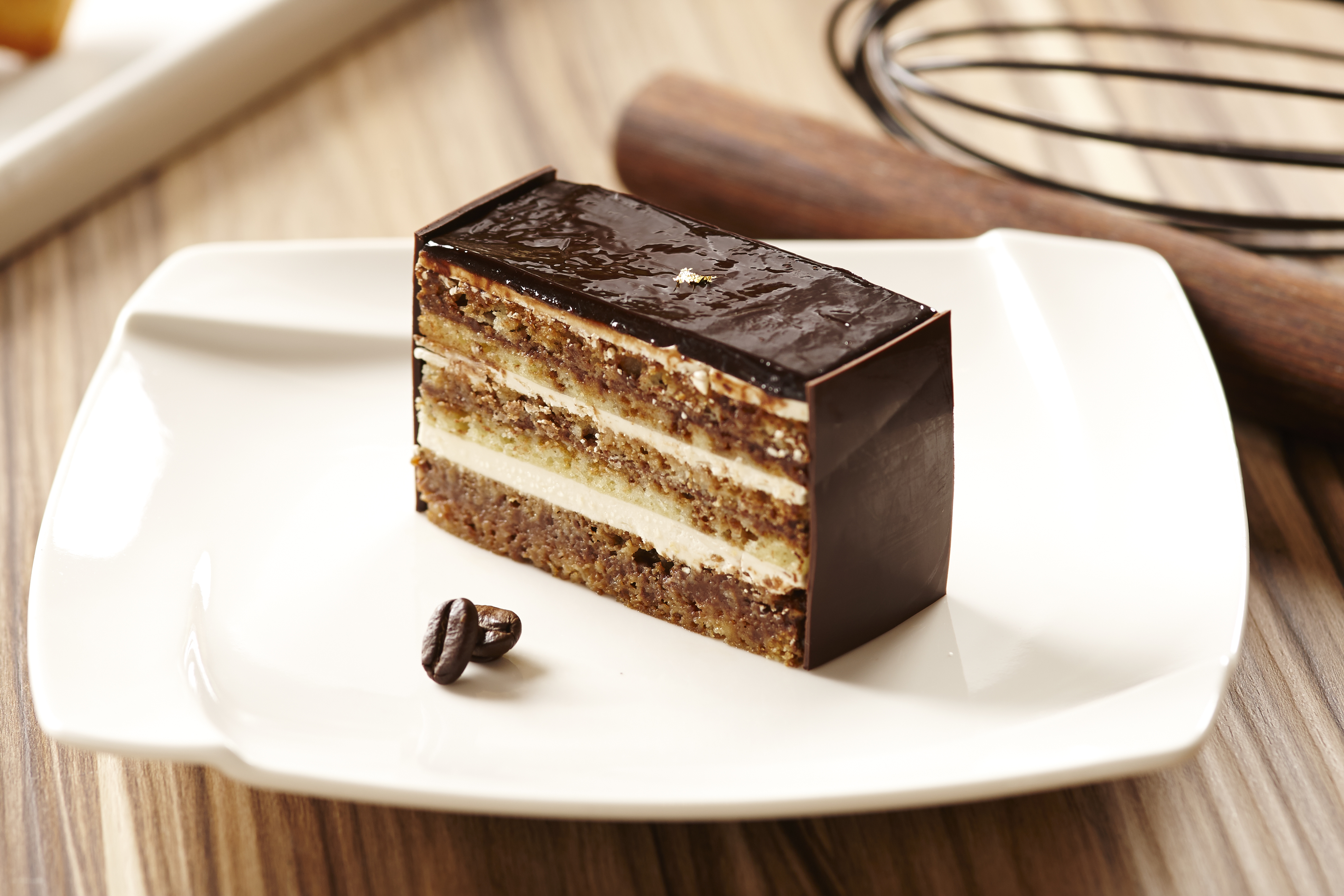 以 歌劇((Opéra)為名的歐培拉,以杏仁蛋糕為基底,包覆著濃濃的咖啡萊姆酒糖液,加入獨家的咖啡奶油霜與巧克力甘納許層層堆疊,從蛋糕體的製作、霜飾 的夾心,等待凝固,再持續重複的程序,到最後再妝點完成,都是需要師傅耐心、沉穩、與等候的多時的細膩工夫才能完美體現出的經典之作!